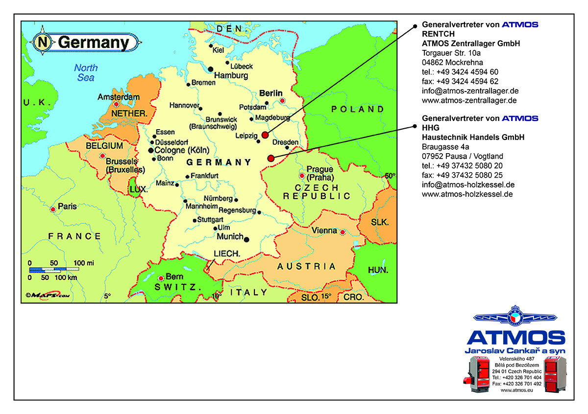 Die Firma Atmos erzeugt verschiedene Heizkessel, unter anderem spezifisch bezogen auf Länder wie Deutschland und Österreich.