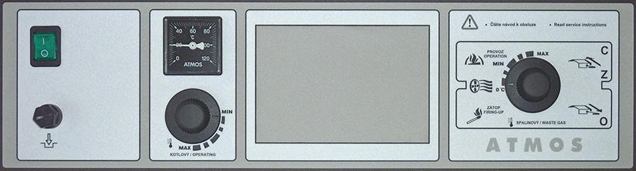 Jeder Kessel kann mit einer modernen Touch-Elektroniksteuerung ATMOS ACD 03 zur Steuerung des gesamten Heizsystems in Abhängigkeit von Außentemperatur, Raumtemperatur und Uhrzeit ausgestattet werden. Diese Regelung ist in der Lage, den Kessel selbst mit einem Ventilator mit vielen anderen Funktionen zu steuern.