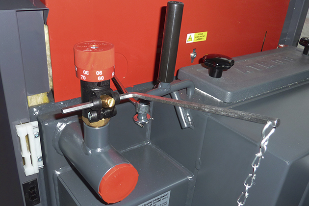Die ATMOS-Kessel müssen mit LADDOMAT 22 oder dem Thermo-Regelventil ESBE zum Erreichen einer Mindesttemperatur von 65 °C des Wassers am Rücklauf zum Kessel ausgestattet sein. Die Vorlauftemperatur am Kessel muss ständig im Bereich von 80 – 90 °C liegen. Alle Kessel werden in deren Grundausführung mit einem Kühlungskreis gegen Überhitzung geliefert. Wir empfehlen, die Kessel mit Speicherbehältern zu installieren.
