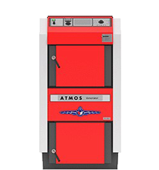 Holzkessel ATMOS Generator GS15, GS20, GS25, GS32, GS40, GSX50 und GSX70 mit großem Anwendungsraum mit Keramik ausgekleidet für optimale Verbrennungsqualität. Es ist ein echter Holzgasgenerator.