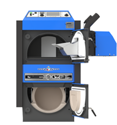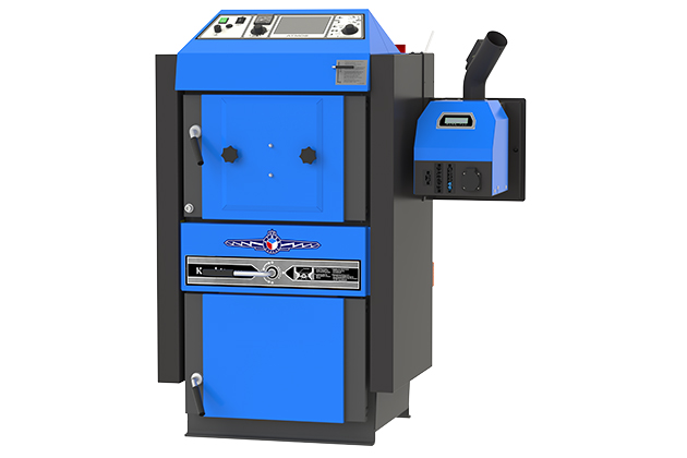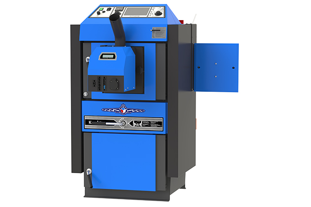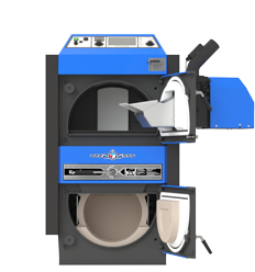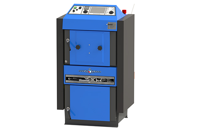 Der Kesselkörper ist als Schweißstück aus Stahlblechen in der Dicke von 6 bis 3 mm hergestellt. Der Kessel besteht aus dem Beschickungstrichter, der im unteren Teil mit einer patentierten Drehrostmechanik mit Zuleitung von Sekundärluft ausgestattet ist. Der untere Nachverbrennungsraum ist mit keramischen Platten ausgelegt, damit die Verbrennung aller benutzten Brennstoffe optimal ist. Im hinteren Kesselteil befindet sich ein senkrechter Verbrennungsgaskanal, der in dem oberen Teil mit einer Ofenklappe bestückt ist. Im oberen Teil des Verbrennungsgaskanals befindet sich ein Abzugsstutzen mit einem Abzugsventilator für den Anschluss an den Schornstein. Im hinteren Kesselteil ist ein Kanal zur Zufuhr von Primär- und Sekundärluft, der mit einer Regulierungsklappe ausgestattet ist.