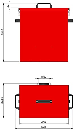 Design 2017 – Empfohlene Größe für die Kessel P14, P21, P25, P15, P20 (Kessel mit Fronthaube (Deckel)) bei Verbrennung von hochwertigen Holzpellets. Entleerungsintervall: einmal pro 14 – 25 Tage.
