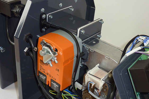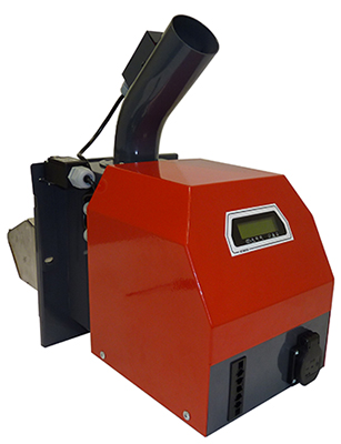 Brennersteuerung: elektronische Steuerung AC07X (AC07), die den Betrieb des externen Förderers, zweier Zündspulen und des Ventilators entsprechend den Anforderungen des Kessels und der Heizungsanlage steuert. Die Elektronik wird durch einen Sicherheitsthermostat des Kessels, einen Sicherheitsthermostat an der Pelletzufuhr zum Brenner, einen Geschwindigkeitssensor des Gebläses und eine Fotozelle für die Flammenerkennung geschützt. Der Brennerbetrieb wird auf dem elektronischen Kontrolldisplay signalisiert.