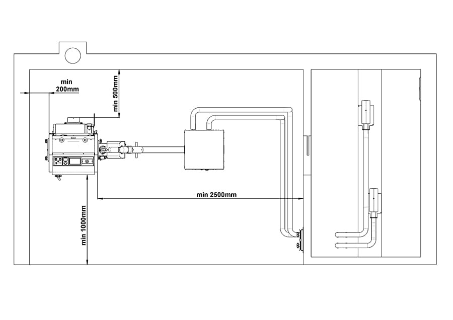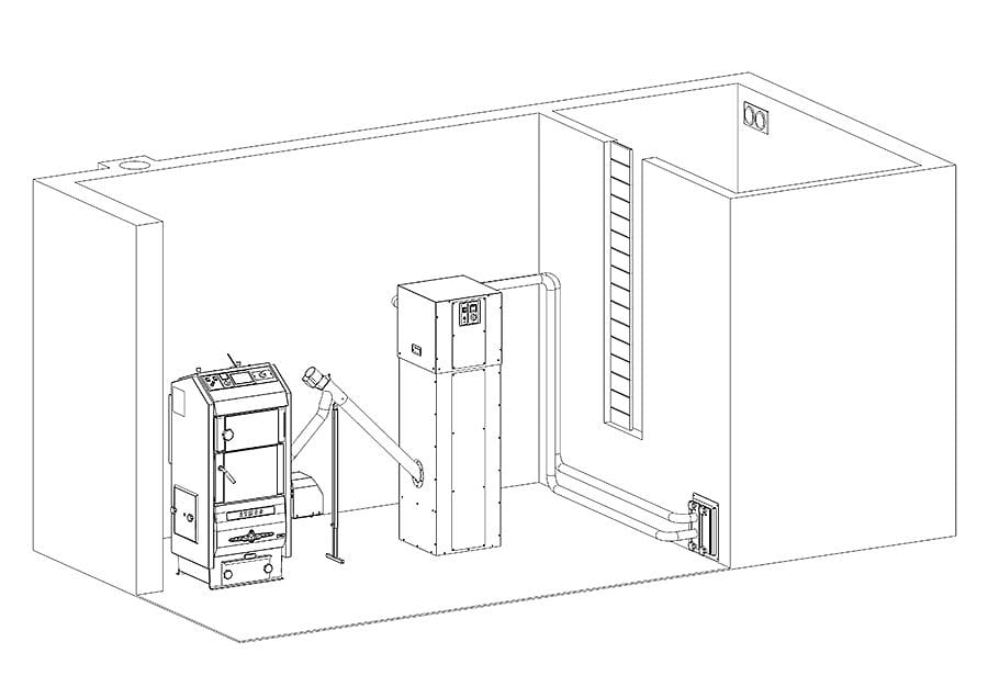 - Heizraum und Pelletsilo mit Mehrpunktansaugung von Pellets mit pneumatischer Zuführung