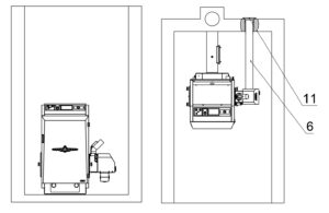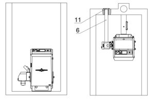 Das Anschlussset für die externe Verbrennungsluftzufuhr ist nur für den Brenner ATMOS A25 mit einer Kesselleistung von 25 kw geeignet.