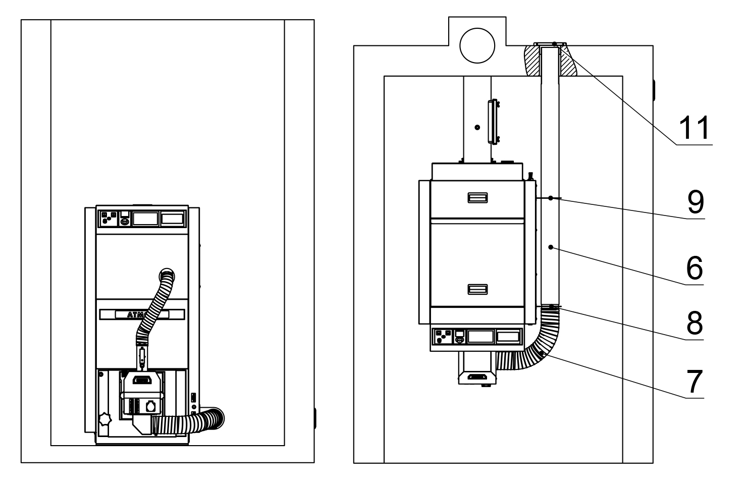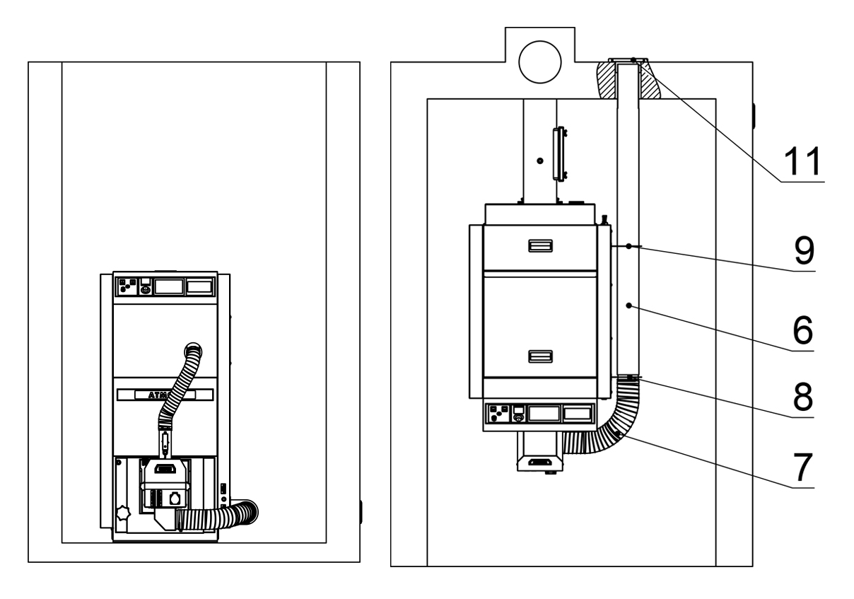 Das Anschlussset für die externe Verbrennungsluftzufuhr ist nur für den Brenner ATMOS A25 mit einer Kesselleistung von 25 kw geeignet.