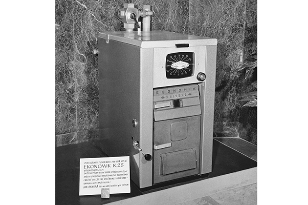 Despite the German occupation and the communist dictatorship, the development of wood boilers, gasification units and compressors was maintained. In 1980, at the Pragotherm exhibition, it presented the first gasification boilers for wood and wood waste. To date, it has developed 90 types of hot water boilers for which it has 15 patents. One of the first boilers developed was the EKONOMIK boiler in 1968.