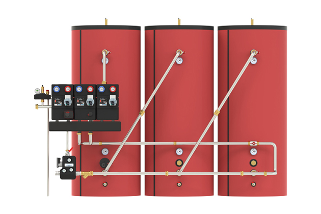 Connection with three accumulation tanks