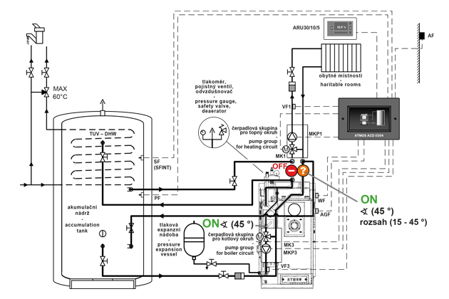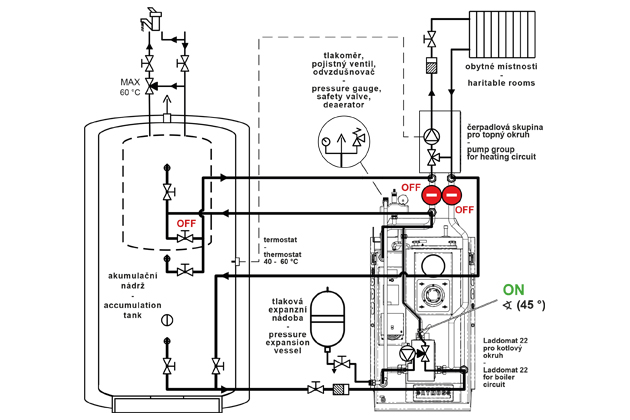 Connection of ATMOS boilers up to 40 kW with manual stoking