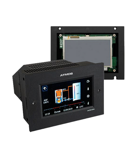 El control equitérmico ATMOS ACD 03/04 es un nuevo elemento de control con pantalla táctil en color que permite controlar fácilmente la caldera y el sistema de calefacción de forma intuitiva según las últimas tendencias. Los reguladores ACD 03 y ACD 04 se diferencian en el diseño de la caja de instalación. Las funciones de control de ambos reguladores son las mismas.