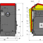 Las calderas están construidas de tal manera que un quemador de pellets ATMOS A85 con limpieza neumática de la cámara de combustión del quemador y del intercambiador de tubos está incorporado en el lado izquierdo o derecho. El cuerpo de las calderas está hecho como una soldadura de chapas de acero con un espesor de 3 – 6 mm. Consta de una cámara de combustión con una gran bóveda y en la parte inferior de la cámara hay una rendija hacia un canal con un tornillo sinfín que evacua la ceniza a una gran tolva exterior (160 l) de la evacuación automática de la ceniza. La pared frontal de la caldera está equipada con una puerta de limpieza en la parte superior, detrás de la cual se inserta una pantalla de acero inoxidable con una mirilla para proteger la puerta contra el sobrecalentamiento. En la parte trasera de la caldera hay un intercambiador de calor tubular provisto de frenos segmentados con función de limpieza automática sin necesidad de desmontarlos. El cuerpo de la caldera está aislado térmicamente por el exterior con lana mineral introducida bajo las cubiertas de chapa del envolvente exterior de las calderas. En parte superior de las calderas hay un panel con un interruptor principal, un interruptor de eliminación automática de cenizas, un interruptor de quemador de pellets (L2), un termóstato de funcionamiento (de control), un termóstato de bomba, un termóstato de seguridad, un termómetro y un fusible de 6,3 A. La caldera no está equipada con un circuito de refrigeración para evitar el sobrecalentamiento, ya que la pequeña cantidad de combustible en el quemador evita que la caldera se sobrecaliente durante un corte de energía. La caldera D85P está equipada con un extractor con sensor de velocidad.