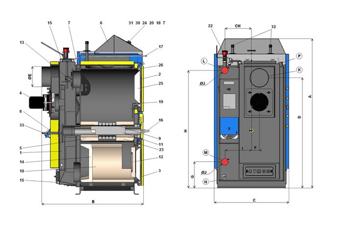 Všechny kotle jsou dodávány v základním provedení s chladící smyčkou proti přetopení. Doporučujeme instalaci kotle s akumulačními nádržemi, které sníží spotřebu paliva a zvýší komfort vytápění.