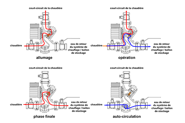 - Après le chauffage, transférez la chaleur restante de la chaudière vers le réservoir