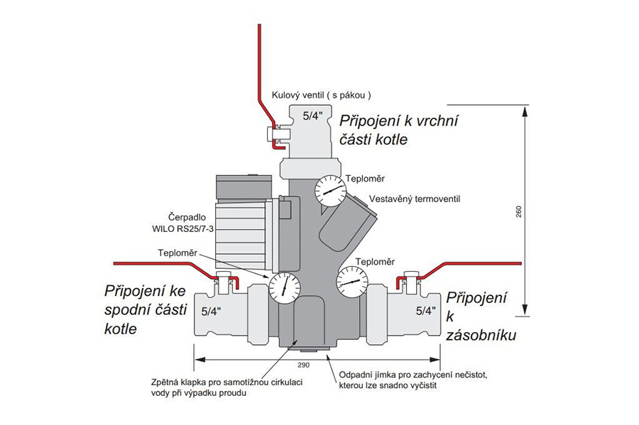 La température de fonctionnement élevée de la chaudière n’a aucun effet pratique sur la consommation de combustible ou sur la température requise de l’eau que nous laissons entrer dans le système de chauffage (40 – 80 °C), mais elle garantira une longue durée de vie de la chaudière. - Raccordement chaudière avec réservoirs d’accumulation