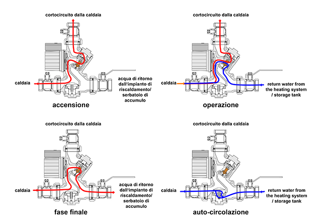 - Al termine del riscaldamento, trasferire il calore residuo dalla caldaia al serbatoio.