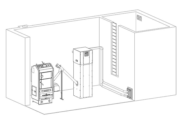 - Centrale termica e silo pellet con aspirazione pellet multipunto con alimentatore pneumatico