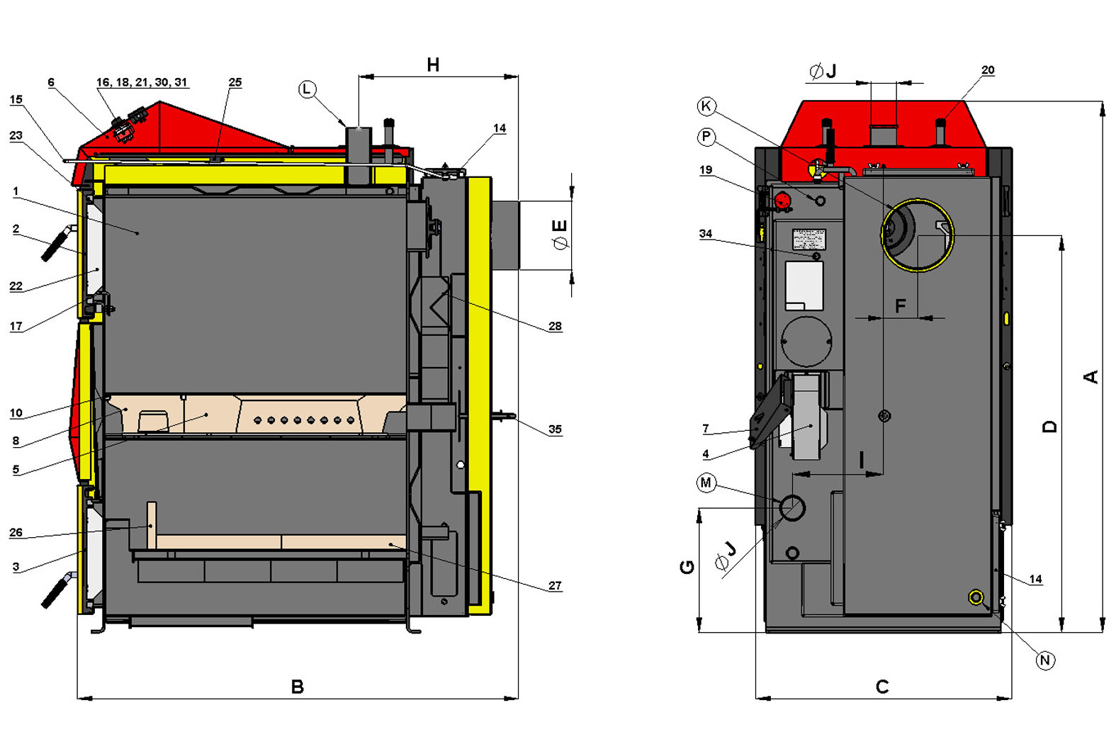 legno (tronchi) asciutto con potenza termica 15 – 17 MJ, kg-1, contenuto acqua min. 12 %, max. 20 %, diametro mm 80 – 150 |