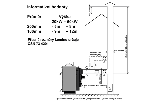 Podczas normalnej pracy temperatura spalin nie powinna spaść poniżej 110 °C, chroniąc w ten sposób kocioł i komin. - Kocioł należy zabezpieczyć przed przegrzaniem na wypadek zaniku prądu