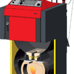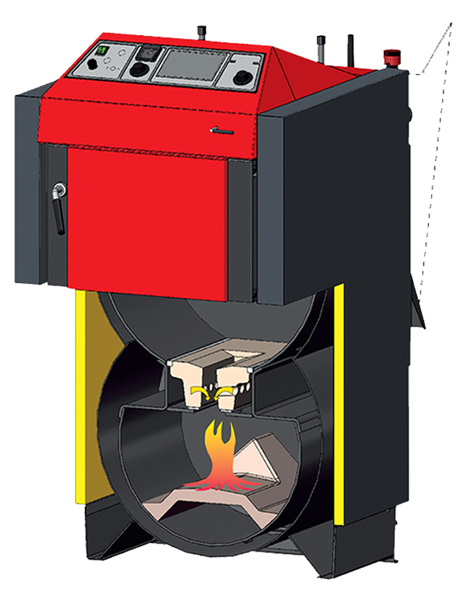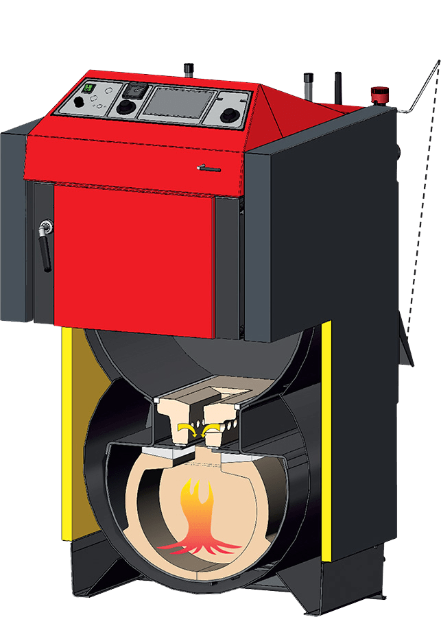 Dopływ powietrza i proces spalania regulowany przez wentylator wyciągowy, wraz z prostą lub elektroniczną regulacją według życzenia klienta, umożliwia szybkie nagrzanie kotła i dobre spalanie już od rozpału.