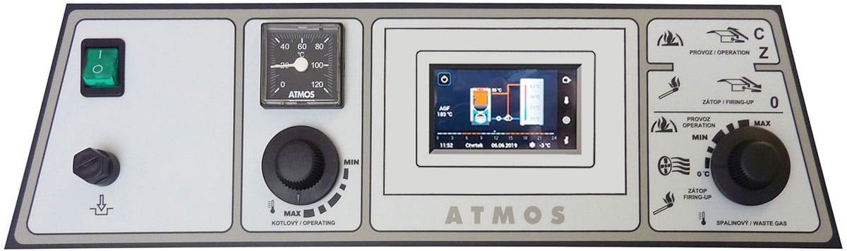 Każdy kocioł można wyposażyć u klienta w regulację elektroniczną ATMOS ACD 03 do sterowania całym systemem grzewczym według temperatury na zewnątrz, temperatury pokojowej i czasu. Ta regulacja jest w stanie sterować też samym kotłem z wentylatorem z wieloma innymi funkcjami.