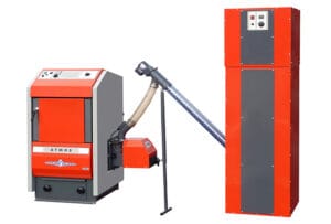 Pneumatyczny transport pelletu składa się ze zbiornika buforowego o pojemności 250 l, specjalnego zbiornika separacyjnego z wbudowanym wentylatorem ssącym oraz obrotowego czujnika poziomu pelletu.