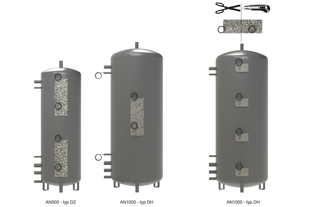 | Nádrž – typ DZ | Samotná nádrž | Samotná izolace (100 mm) | Nádrž včetně izolace | ![]() |