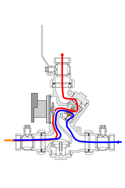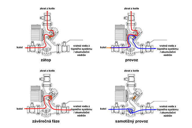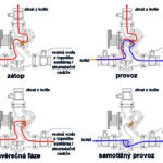 - Při přerušení dodávky el. proudu a zastavení oběhového čerpadla odvést částečně přebytečné teplo přes zpětnou klapku z kotle do nádrže nebo systému samotížným oběhem.