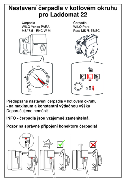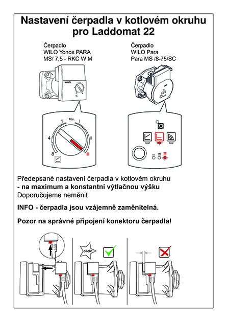 Svou konstrukcí s masivním litinovým tělem nahrazuje klasické zapojení z jednotlivých hydraulických armatur pro kotlový okruh (termoregulační ventil, čerpadlo, zpětná klapka, kulové ventily, teploměry, šroubení a izolace). Laddomat 22 lze použít pro kotle o výkonu od 15 do 100 kW. Laddomat 22 je dodáván s termopatronou 78 °C a s náhradní termopatronou 72 °C umístěnou v polystyrenové izolaci. Termopatronu 72 °C používáme pro kotle nad 32 kW nebo pro systémy bez akumulační nádrže, kde není požadavek na vyšší provozní teplotu kotle. Zapojení kotle s Laddomatem 22 je podstatně snadnější, rychlejší a samotná instalace je jednodušší v porovnání s klasickým termoregulačním ventilem a dalšími potřebnými armaturami, proto vám ho můžeme jen doporučit.