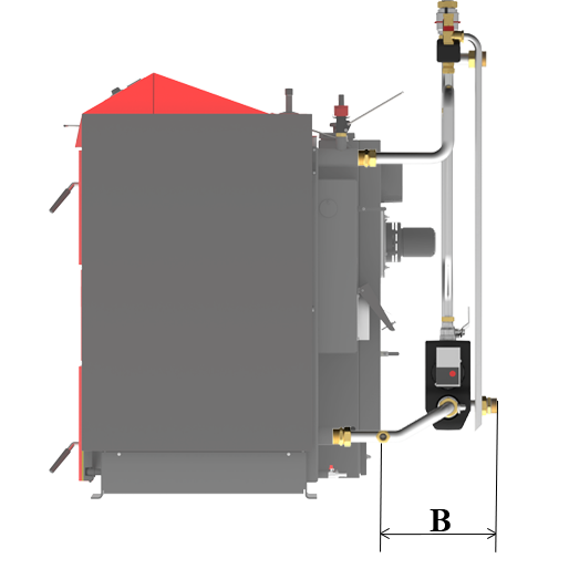 B hloubka zapojení za kotlem |