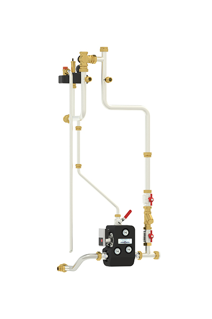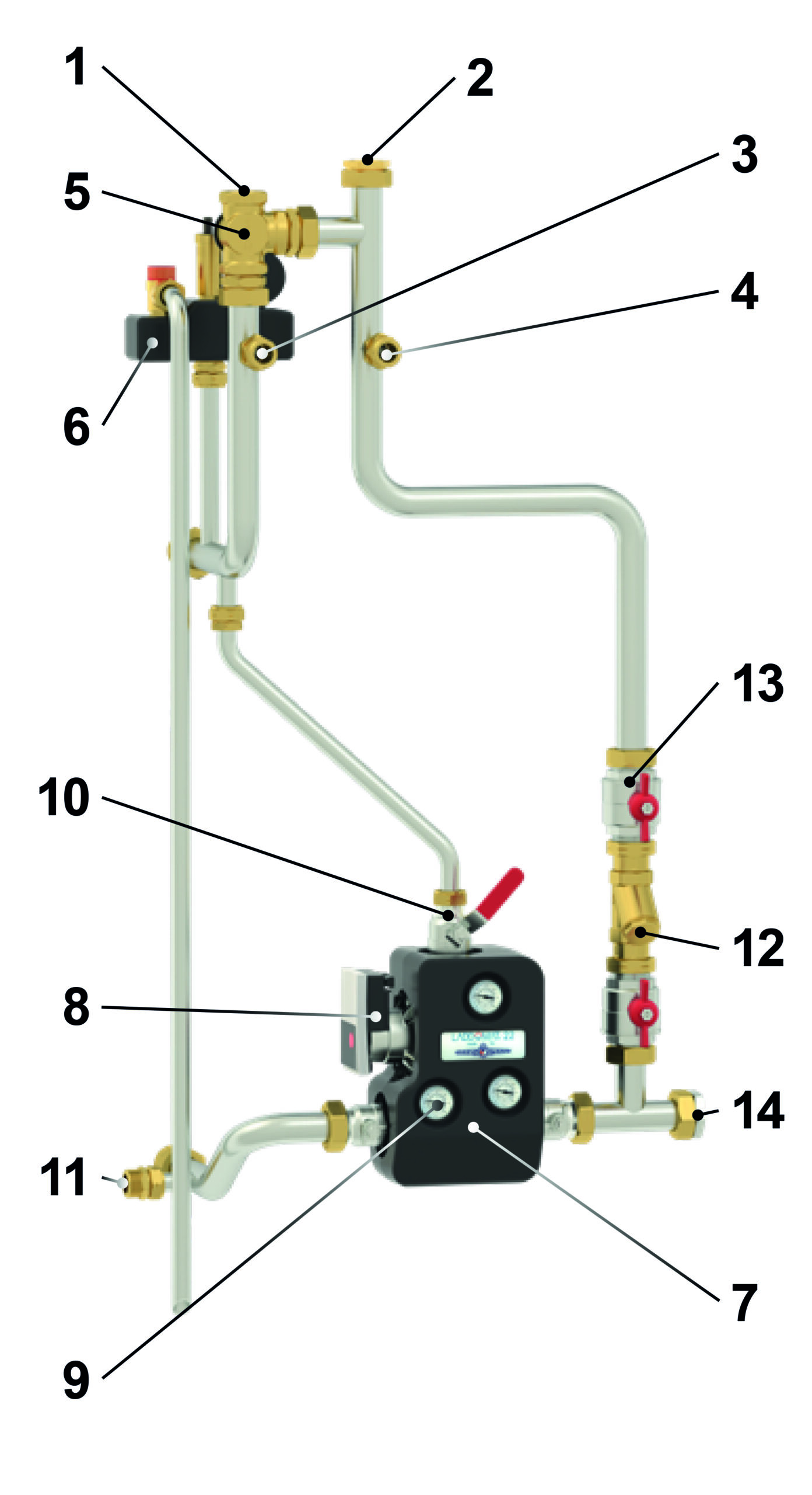 Popis: Profesionální nerezové zapojení kotle postavené na potrubí o průměru 35 x 1,5 mm zajišťující minimální teplotu vratné vody do kotle pomocí Laddomatu 22 a umožňující rychlou instalaci na kotel pomocí dvou 6/4“ vsuvek s plochým těsněním. Zapojení je speciálně určené pro staré systémy s jedním topným okruhem, které dříve fungovaly na samotíž.