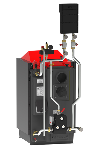 Ещё одним преимуществом регулирования и конструкции котлов ATMOS является то, что котлы работают при хорошей тяге дымохода до 70 % номинальной мощности даже без вентилятора.